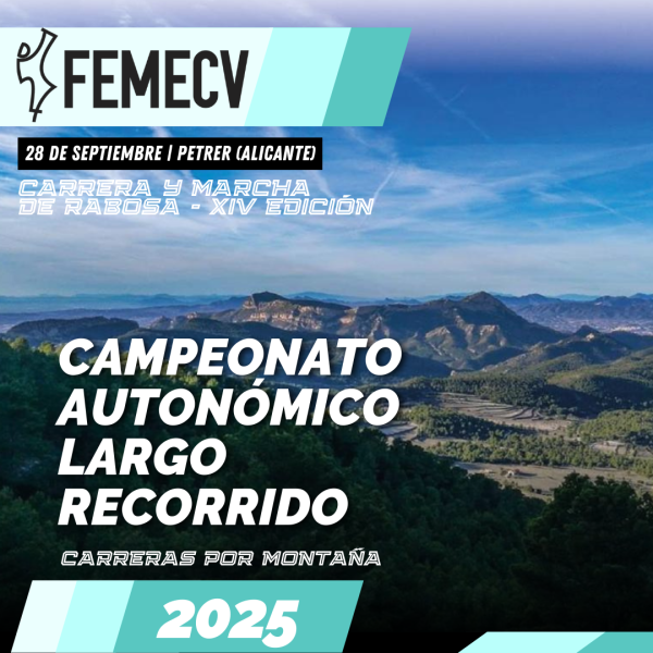Campeonato Autonómico de Largo Recorrido Petrer Fecha 28/09/2025 Distancias 56km Tipo Trail Ciudad Petrer Provincia Alicante Hora 06:00h Ir a la Web Oficial / Inscripción