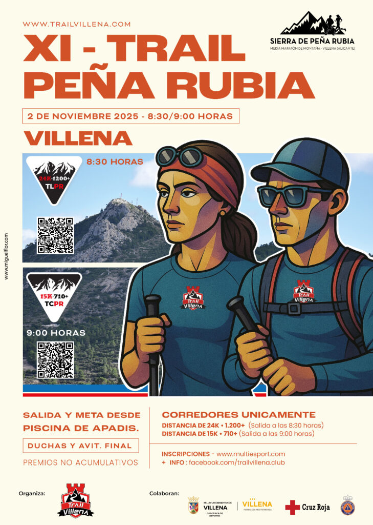 XI Trail Peña Rubia Fecha 02/11/2025 Distancias 15km, 24km Tipo Trail Ciudad Villena Provincia Alicante Hora 08:30h Ir a la Web Oficial / Inscripción